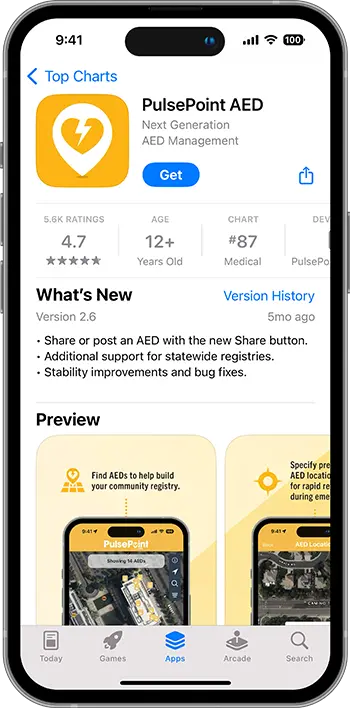 You can use the app to record and share the location of AEDs you see in your community. If you find a device that is already in the registry but has a problem—such as a closed business or the AED is missing—you can report these issues directly through the app to help keep the data accurate.